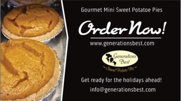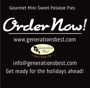 Welcome to the Generations Best family, we’re glad you’ve stopped by! If you’re looking for a taste of pure joy in every bite then, you’ve gotta try a Generations Best homemade mini sweet potato pie! The Generations Best brand is about baking quality gourmet pies from scratch with fresh sweet potatoes, spices and flavor providing our customers with the sweet indulgence of homemade bliss that brings the feeling of home baked love to your family, friends and special events! We take pride in offering fresh baked pies and great customer service and we accomplish this goal with our pre-ordering format for our customers to use to place their orders.This guarantees that our pies are only baked to order and always baked fresh at the customers request! There’s no need to search any longer for a great homemade sweet potato pie, you've found the quality your looking for! Go ahead, put your orders in now and we'll start baking!